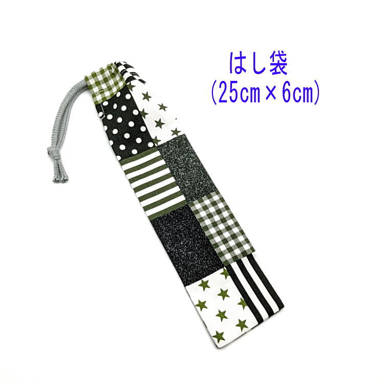 はし袋・大(25cm×6cm)【パッチワーク柄 グリーン】箸袋 はし入れ 箸入れ ハブラシ入れ 細長・・・