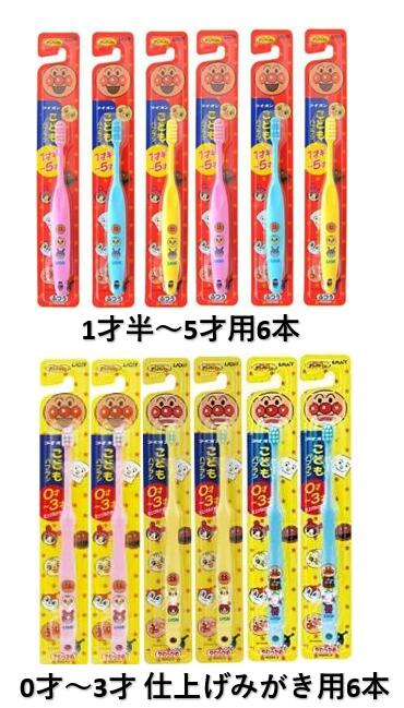 【送料込み】ライオンこどもハブラシ 1才半-5才用×6本 + 0才-3才 仕上げみがき用 6本(計1・・・