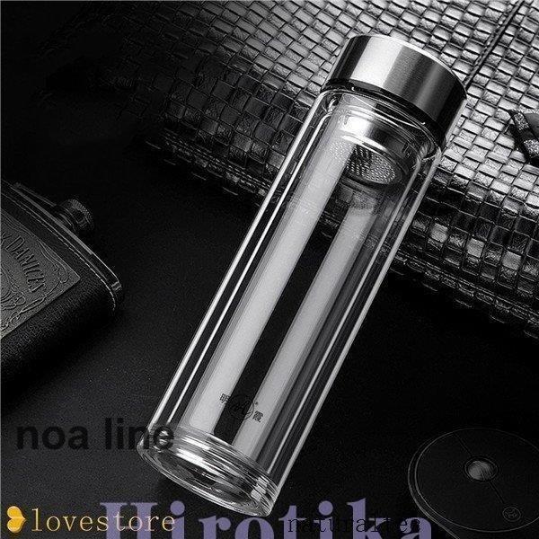 水筒 クリア ガラス 二重構造 魔法瓶 ウォーターボトル マグボトル 直飲み ボトル すいとう 茶漉・・・