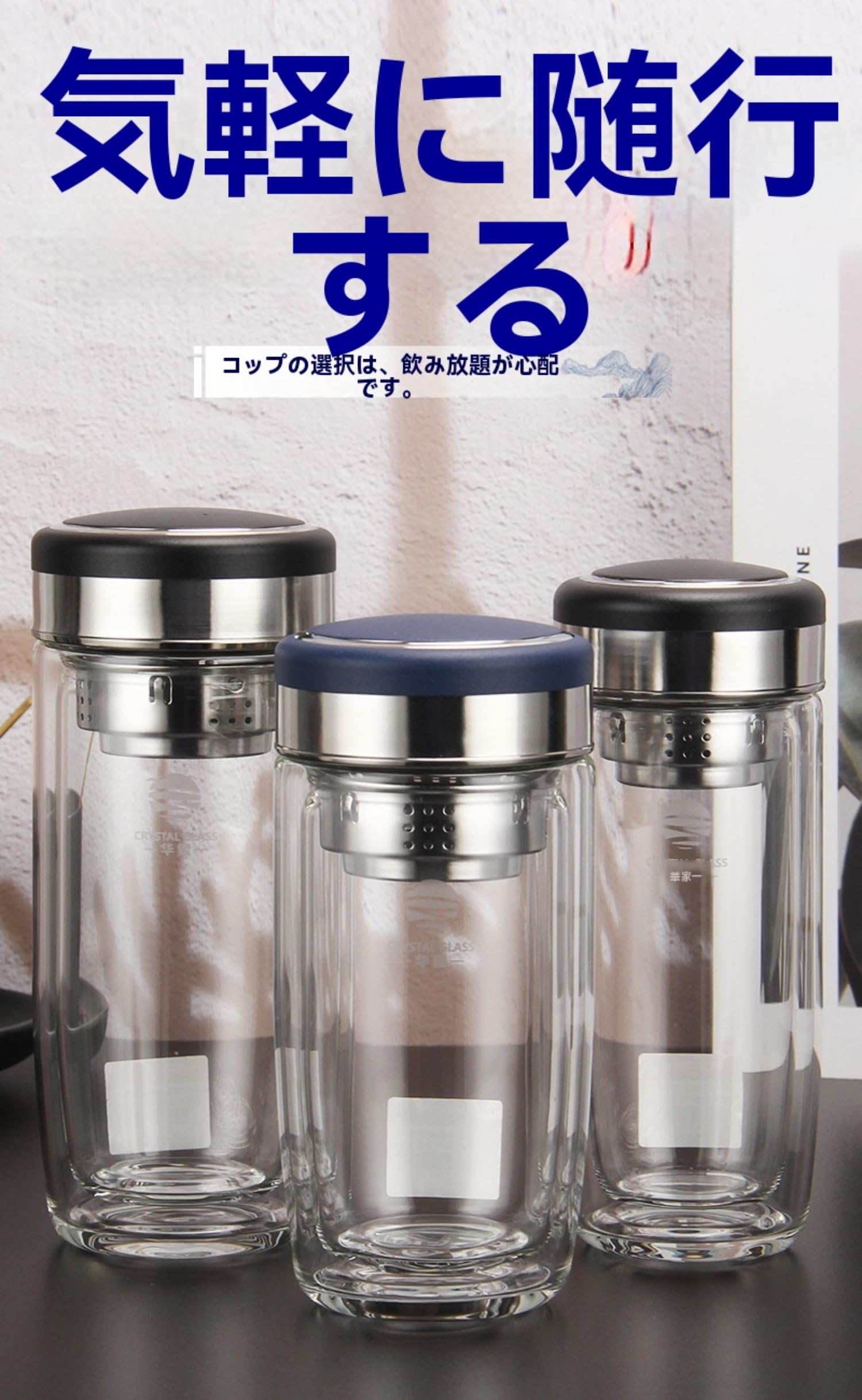 魔法瓶 ガラス 水筒 真空二重断熱構造 310ML 360ML 440ML 保温保冷 直飲み対応 3・・・