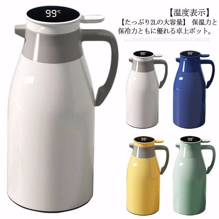 保温ポット 魔法瓶 まほうびん 温度表示 温度計付き ポット 2L 大容量 保温 保冷 卓上ポット ・・・