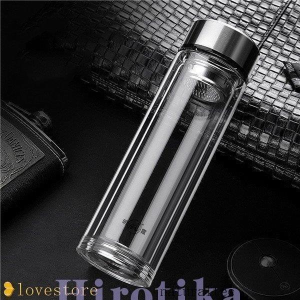 水筒 クリア ガラス 二重構造 魔法瓶 ウォーターボトル マグボトル 直飲み ボトル すいとう 茶漉・・・