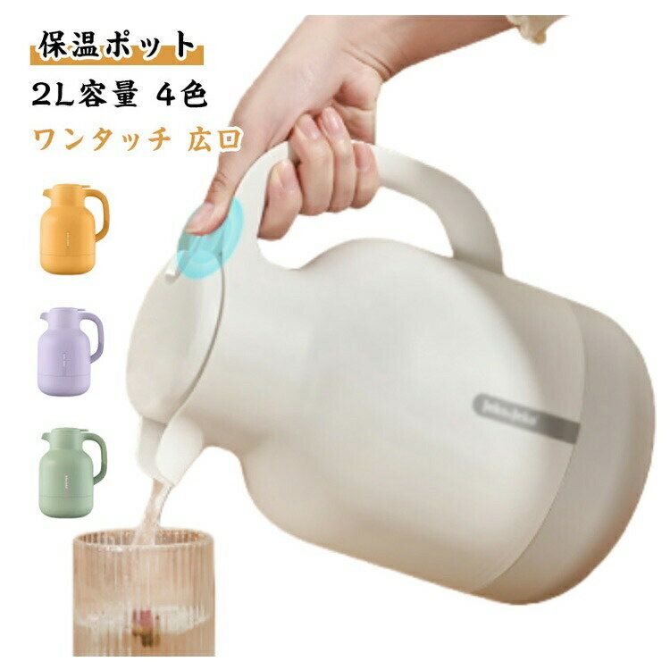 魔法瓶 保温ポット 2L 保冷ポット 北欧 大容量 卓上ポット まほうびん 真空断熱 ポット ガラス・・・