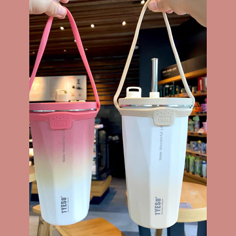 【人気】タンブラー 保温 保冷 蓋付き ストロー付きタンブラー おしゃれ 持ち運び ホルタ付き水筒 ・・・