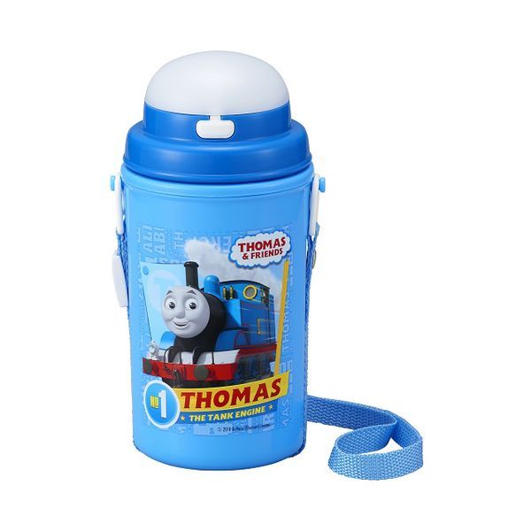 オーエスケー きかんしゃトーマス 直飲み水筒 ブルー SC-600B ショルダーベルト付き