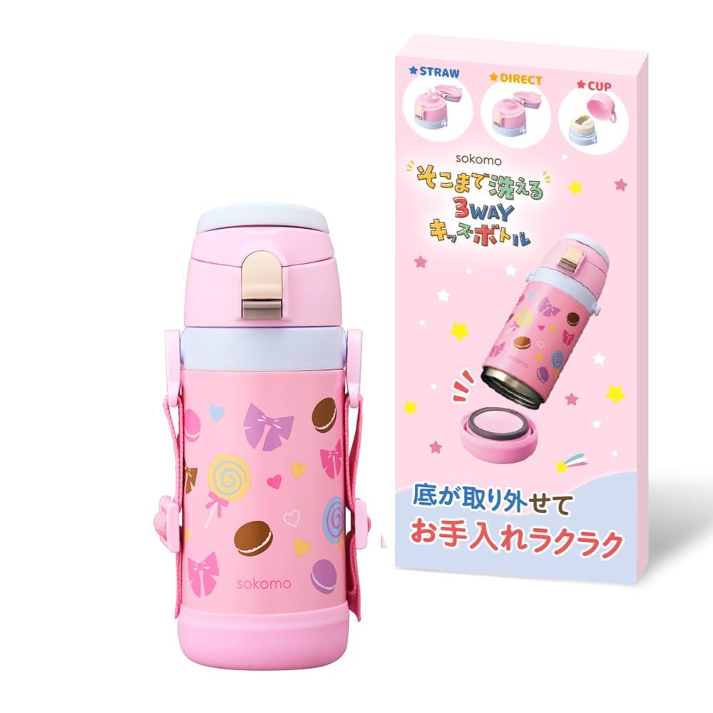 【そこまで洗えるキッズボトル】 ドウシシャ 水筒 子供 そこまで洗える3WAYキッズボトル 450m・・・
