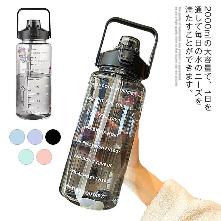 「スーパーSALE割引」軽量 水筒 プラスチック 直飲み 部活 かわいい 漏れ防止 おしゃれ 2リッ・・・