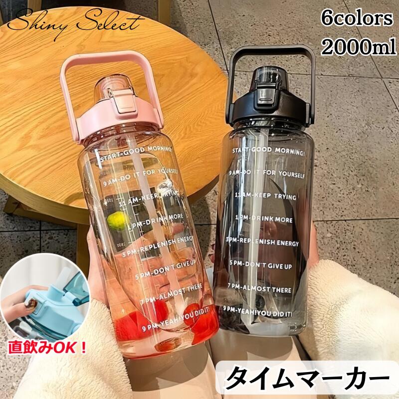 【大人気商品】ウォーターボトル 水筒 2リットル 水筒 2000ml タイムマーカー 漏れ防止 スト・・・