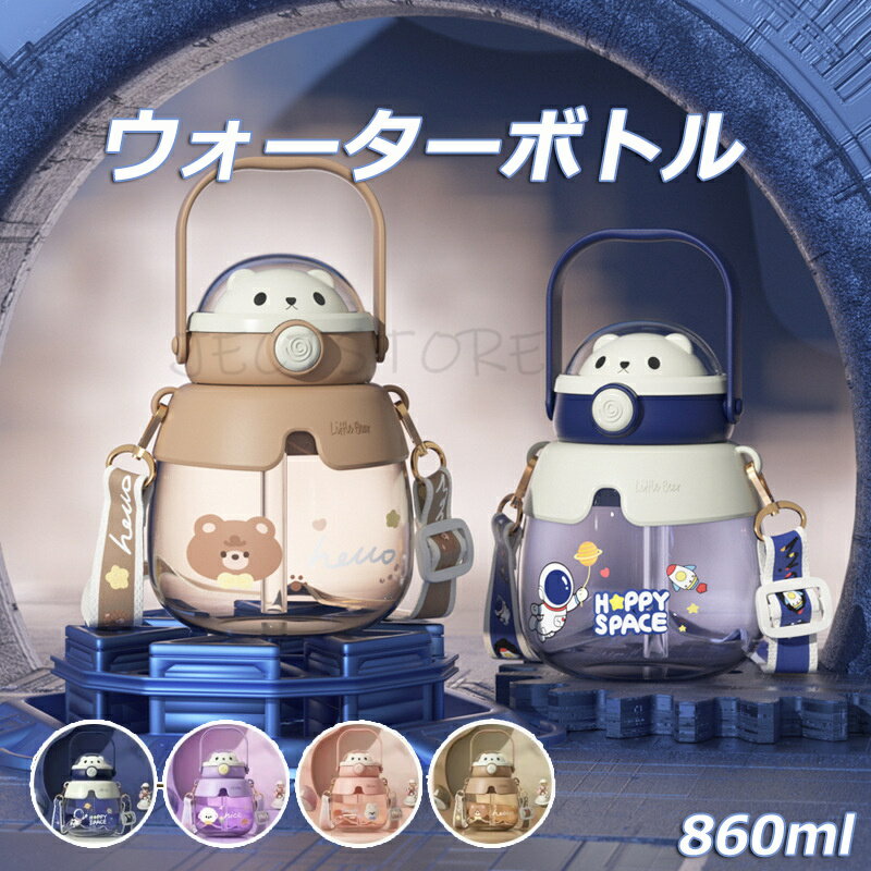 ウォーターボトル 水筒 860ml かわいい 運動水筒 洗いやすい 携帯便利 漏れ防止 ストロー付き・・・