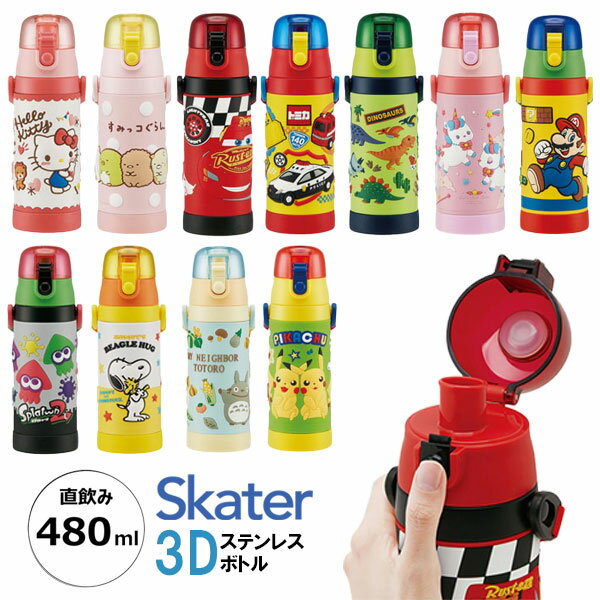 超軽量 3Dダイレクトステンレスボトル 480ml 保冷 Skater 水筒 立体プリント ワンプッ・・・