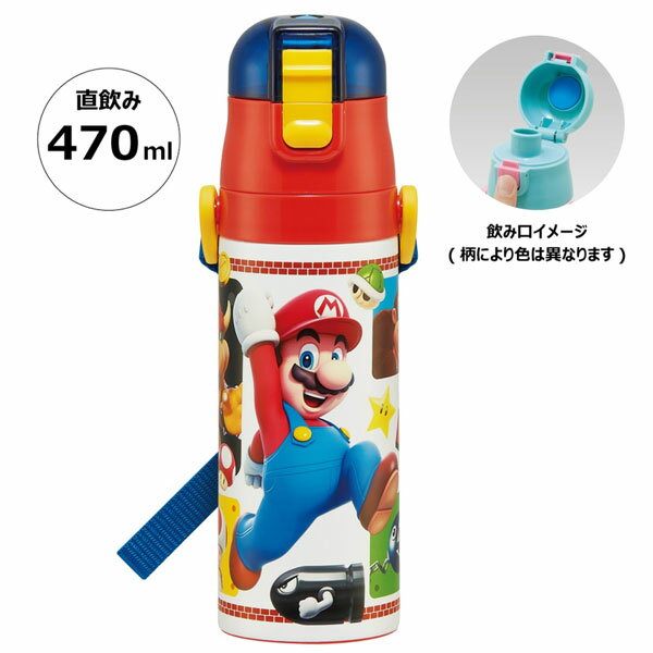 スーパーマリオ23 水筒 ロック付ワンプッシュダイレクトステンレスボトル 470ml SDC4 スケ・・・