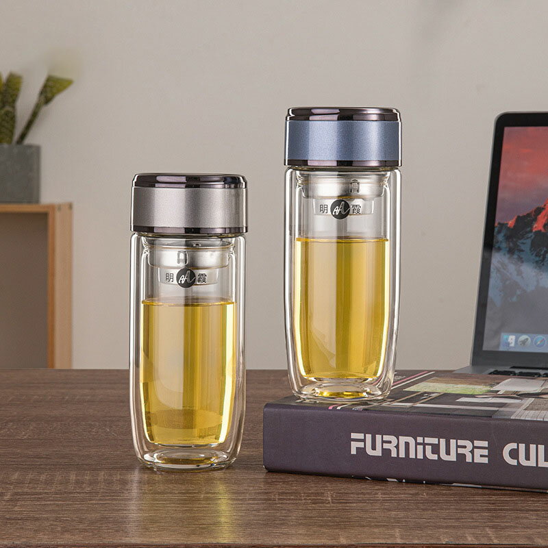 【送料無料】ティーボトル 耐熱ガラス 水筒 ガラス 二重構造 茶こし付きタンブラー 240ml 38・・・