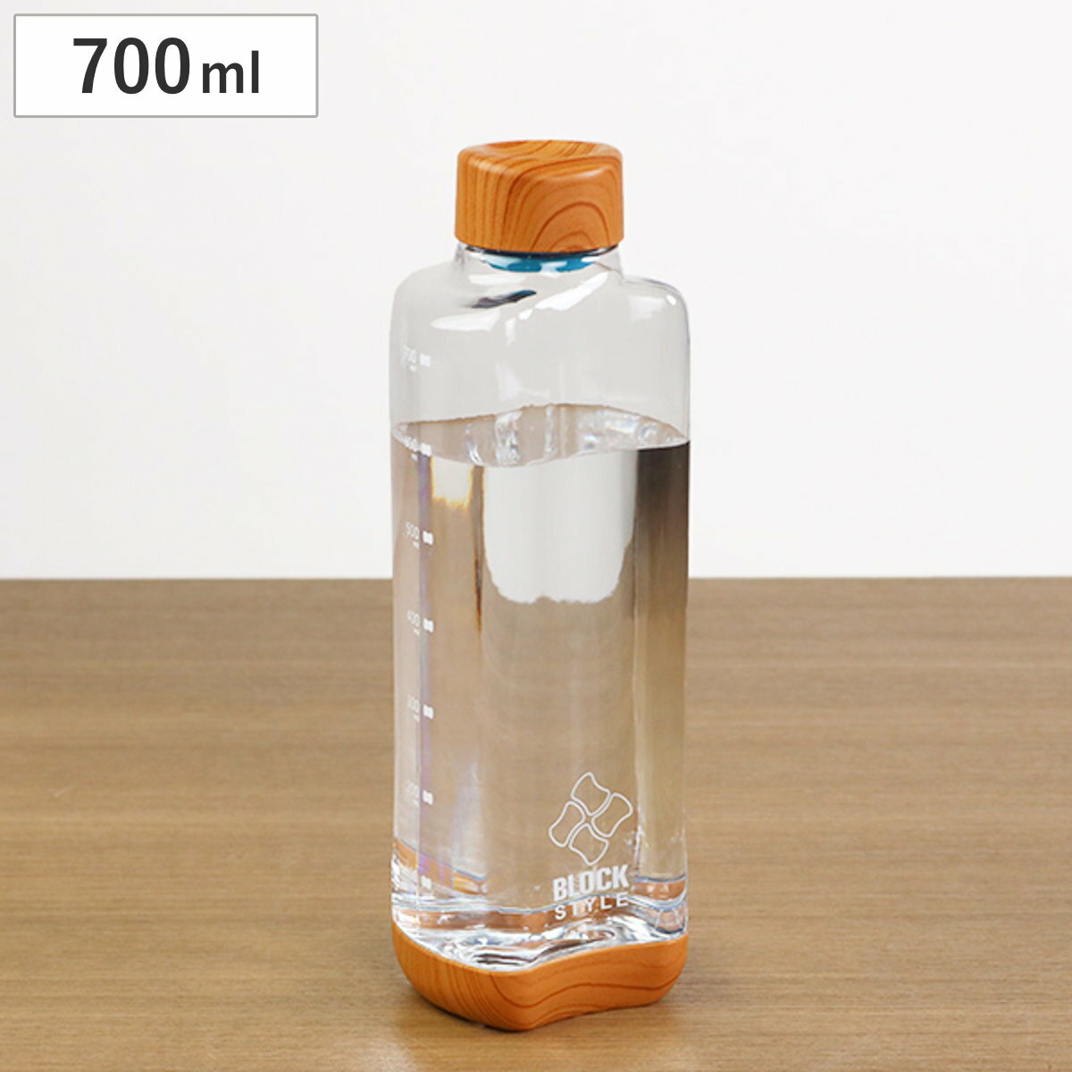水筒 直飲み プラスチック ブロックスタイル アクアボトル 700ml ウッド調 ( 目盛り付き プ・・・