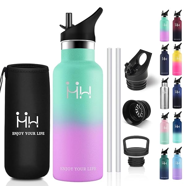 水筒 子供女の子 水筒 500ml ストロー付き ステンレスボトル シームレス 洗いやすい 自転車 ・・・