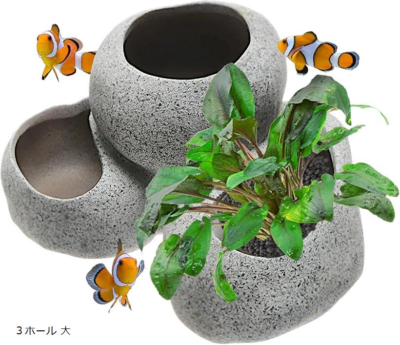 水槽 水草 鉢 ソイル 砂 付き 水槽ポット アクアリウム 石 オブジェ メダカ 熱帯魚 3ホール ・・・