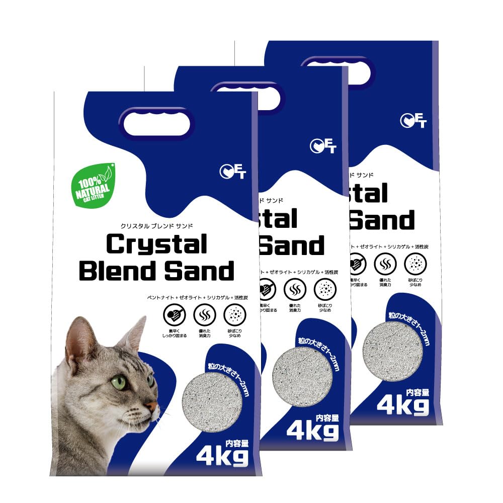 【OFT】 ク リスタル ブレンドサンド 4kg×3個セット 獣医師推奨 白い猫砂 体調管理 鉱物系・・・