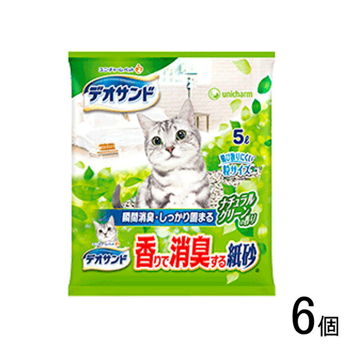 【ペット】【6個】 ユニチャーム デオサンド 香りで消臭する紙砂 ナチュラルグリーンの香り 5L×6・・・