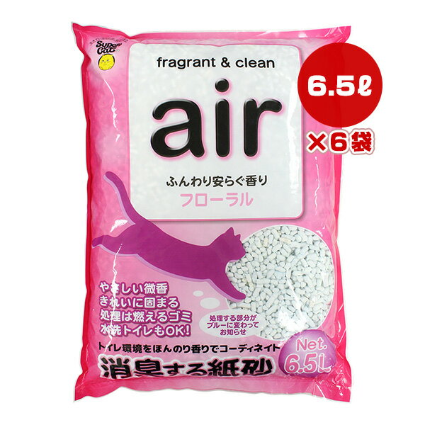 air 消臭する紙砂 ふんわり安らぐ香り フローラル 6.5L×6袋 スーパーキャット ▼a ペット・・・