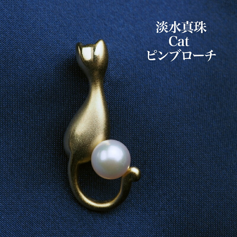 淡水真珠 キャット ピンブローチ パール 猫 CAT タイピン タック 艶消しゴールド/シルバーカラ・・・