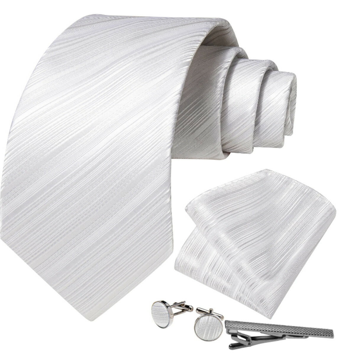 ネクタイ チーフ タイピン カフス 4点 セット メンズ 幅 レギュラータイ ホワイト系 パールホワ・・・