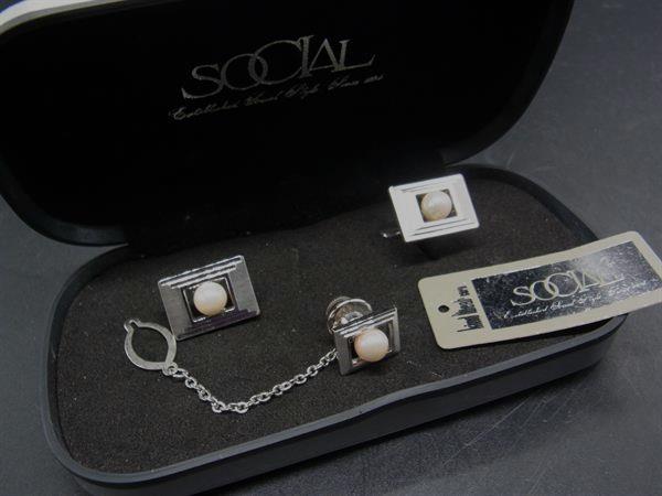 ■美品■ SOCIAL SV925 本真珠 パール約5mm ネクタイピン カフスボタン カフリンクス・・・