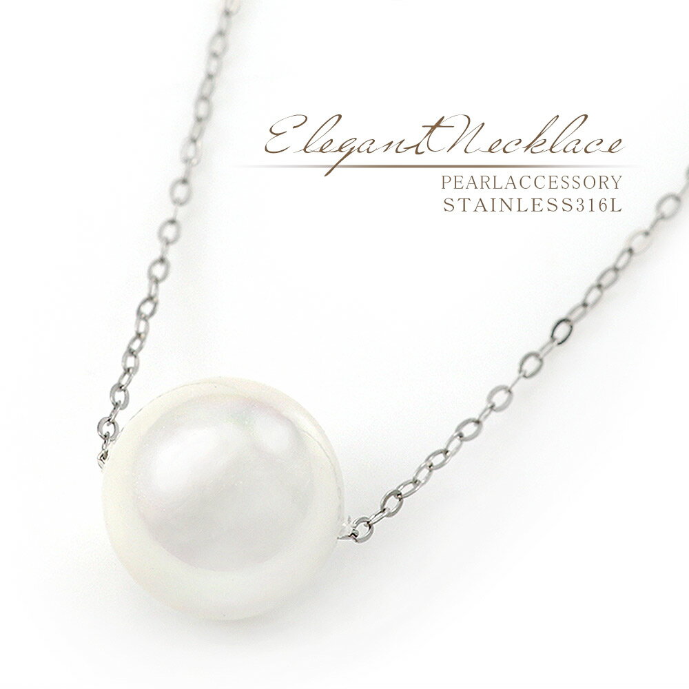 パール ネックレス 一粒 金属アレルギー 対応 アクセサリー ステンレス 日本製 真珠 シェルパール・・・