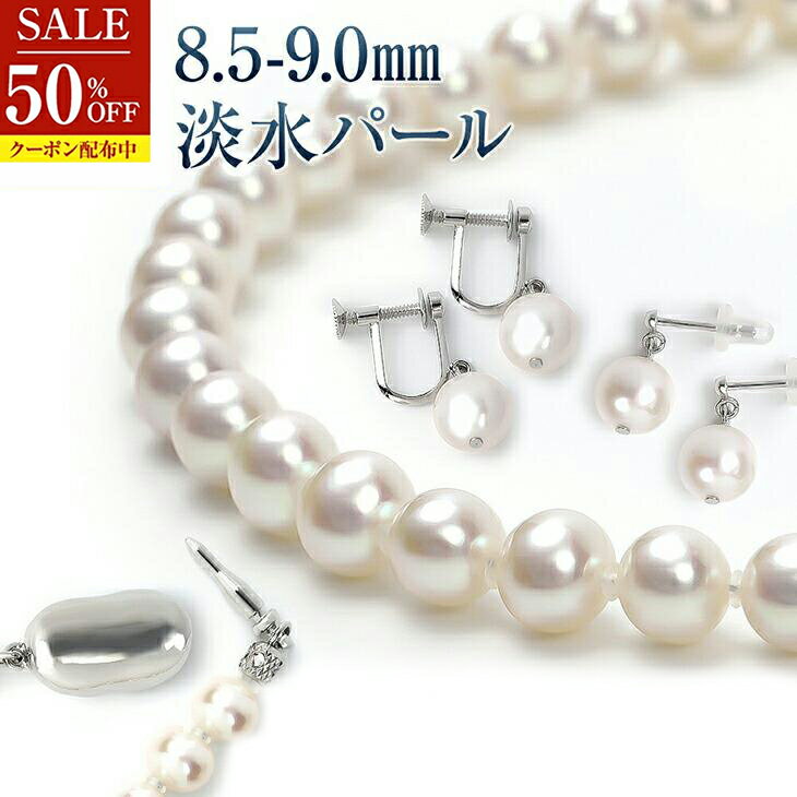 パール ネックレス レディース 淡水 真珠 無核 本真珠 ピアス イヤリング セット 9.5mm 9・・・