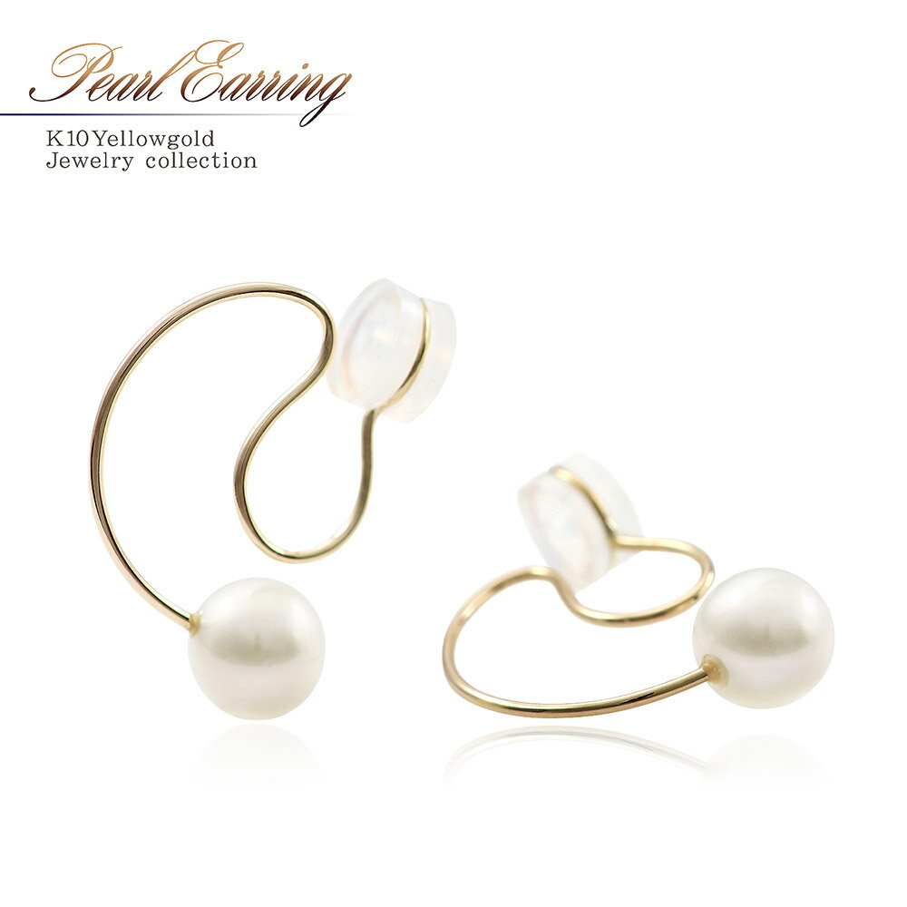 パール イヤリング 真珠 10金 フープイヤリング 淡水真珠 ゴールド ジュエリー K10 女性 プ・・・