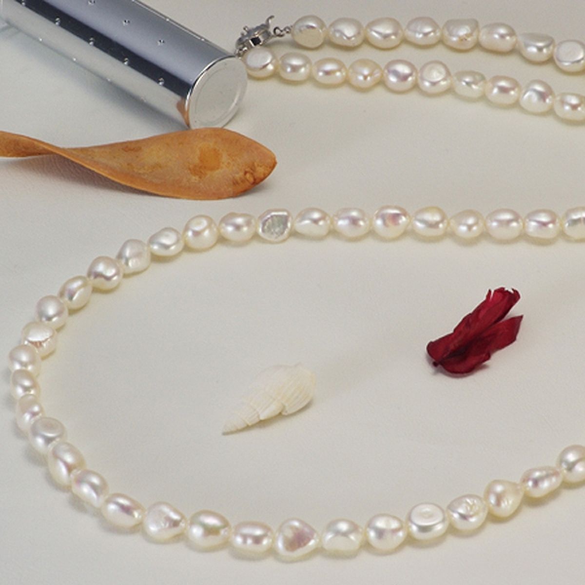 バロックパール ネックレス 淡水真珠 バロック セミロング ロングネックレス 8.0-9.0mm 結・・・