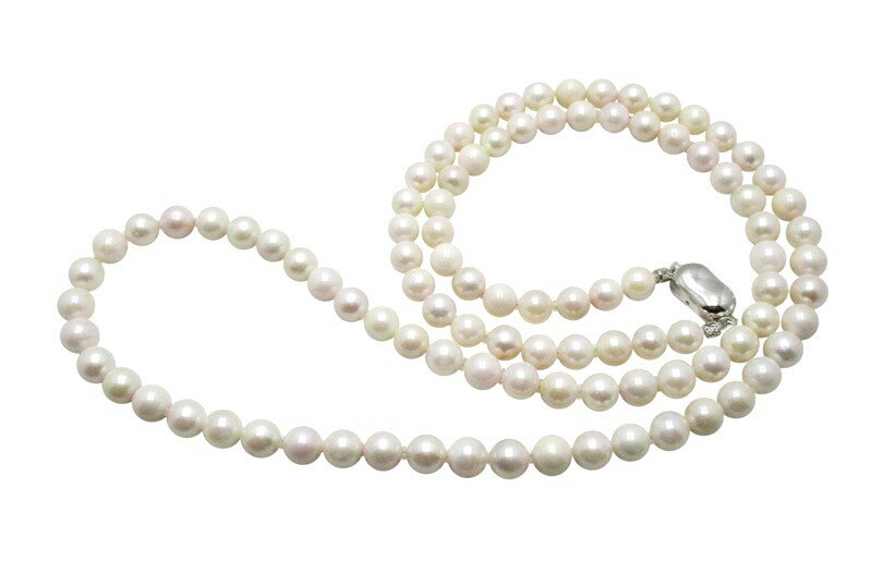 アコヤ真珠 セミ ロング ネックレス 7.5-8.0mm 80cm ホワイトピンク あこや 本真珠 ・・・