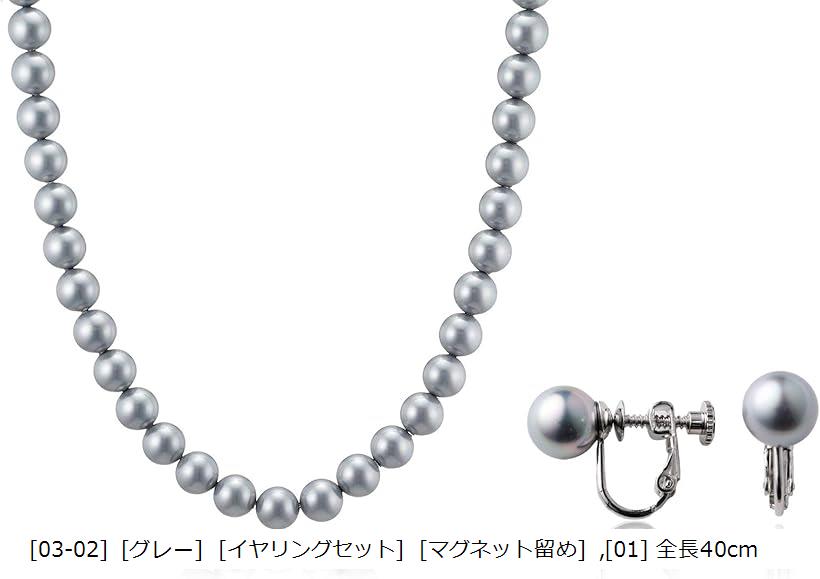 人工真珠 ナチュラル パールネックレス 冠婚葬祭 日本製 ([03-02] [グレー] [イヤリング・・・
