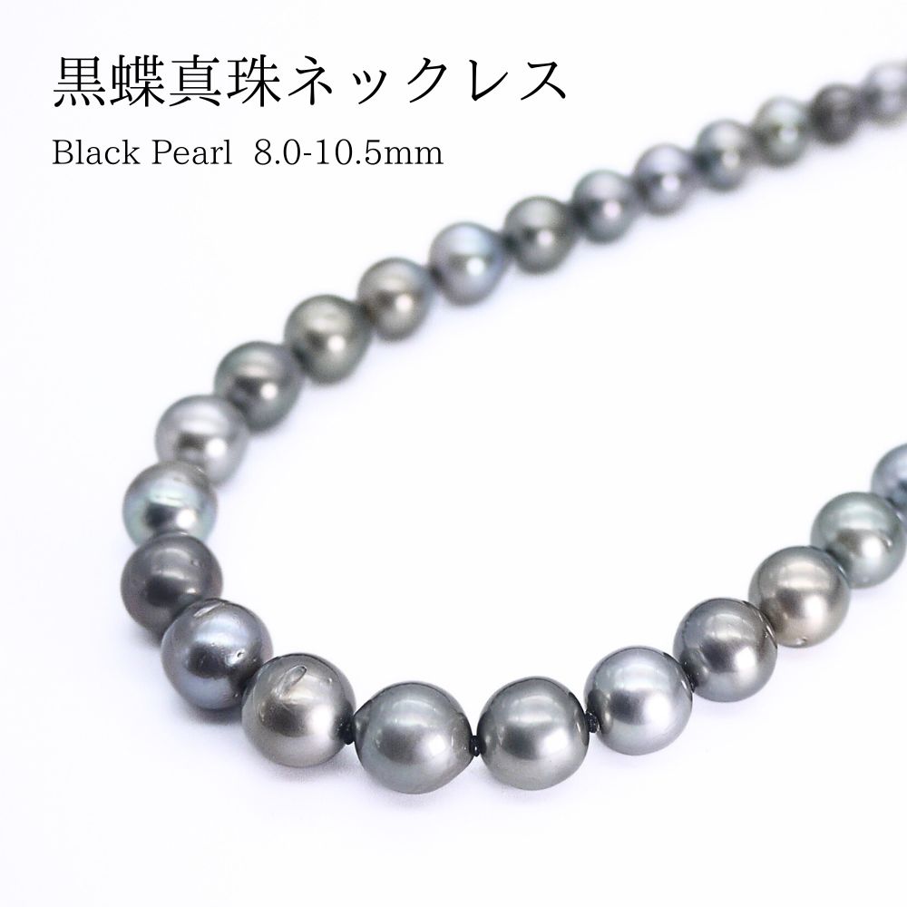 黒蝶真珠 8.0〜10.5mm パールネックレス (b1001)ブラックパール タヒチパール 冠婚葬・・・