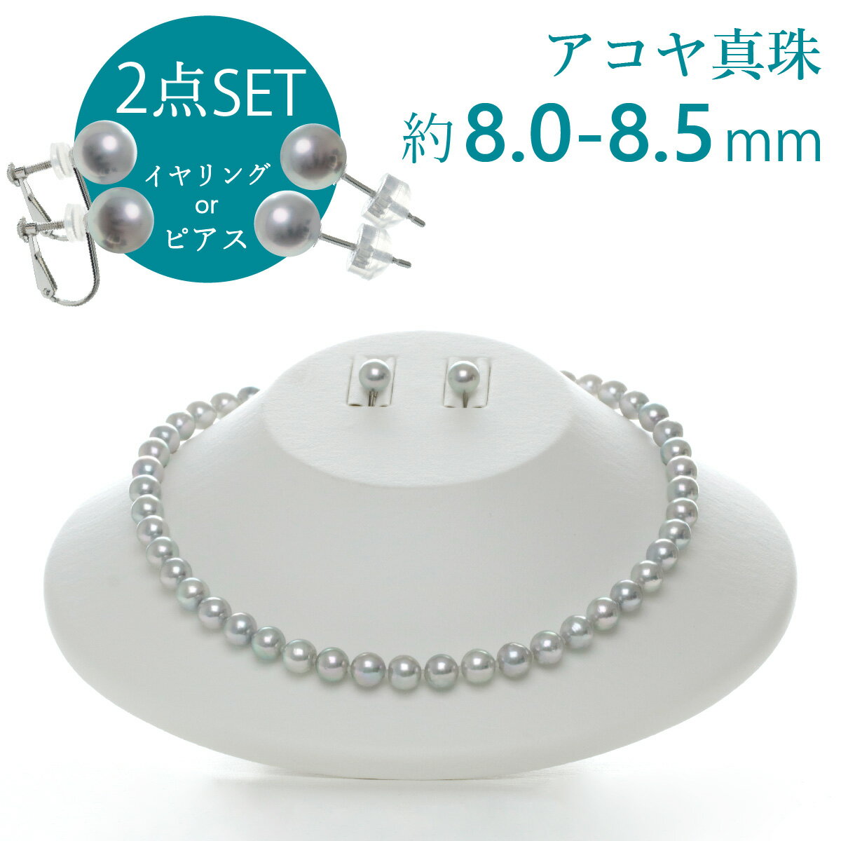 約8.0-8.5mm/アコヤグレー処理真珠 ネックレスセット 国産パールケース付 送料無料 即日発送・・・