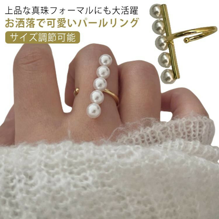 レディース 女性 指輪 金色 ゴールド リング オープンタイプ 大人 パール サイズ調節可能 きれい・・・