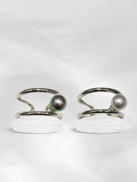 ブラック パール リング 指輪 9mm 黒蝶 真珠 リング K18WG ホワイトゴールド 18金 レ・・・