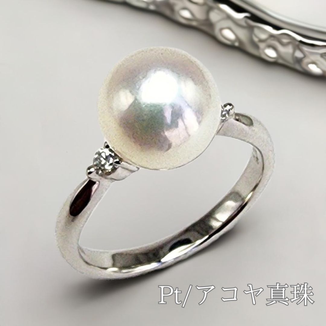 パール リング 指輪 あこや真珠 8.0mm アコヤ 真珠 リング PT900 プラチナ レディース・・・