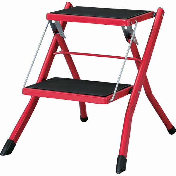 【クーポン配布中】ステップ 踏み台 幅42cm レッド 折りたたみ スチール おしゃれ 脚立 アシス・・・