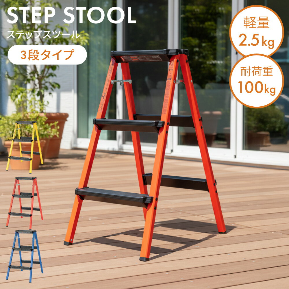 折りたたみ式 ステップスツール/脚立 【3段タイプ オーク】 アルミ製 軽量 耐荷重100kg 防水・・・