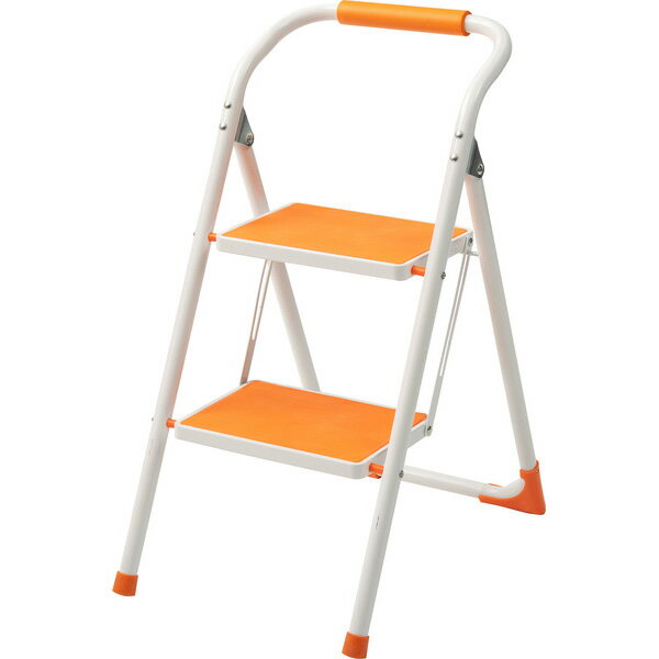 手すり付き折りたたみステップ台2段(オレンジ)LFS-007OR脚立 折りたたみ 踏み台 ラダー 折・・・