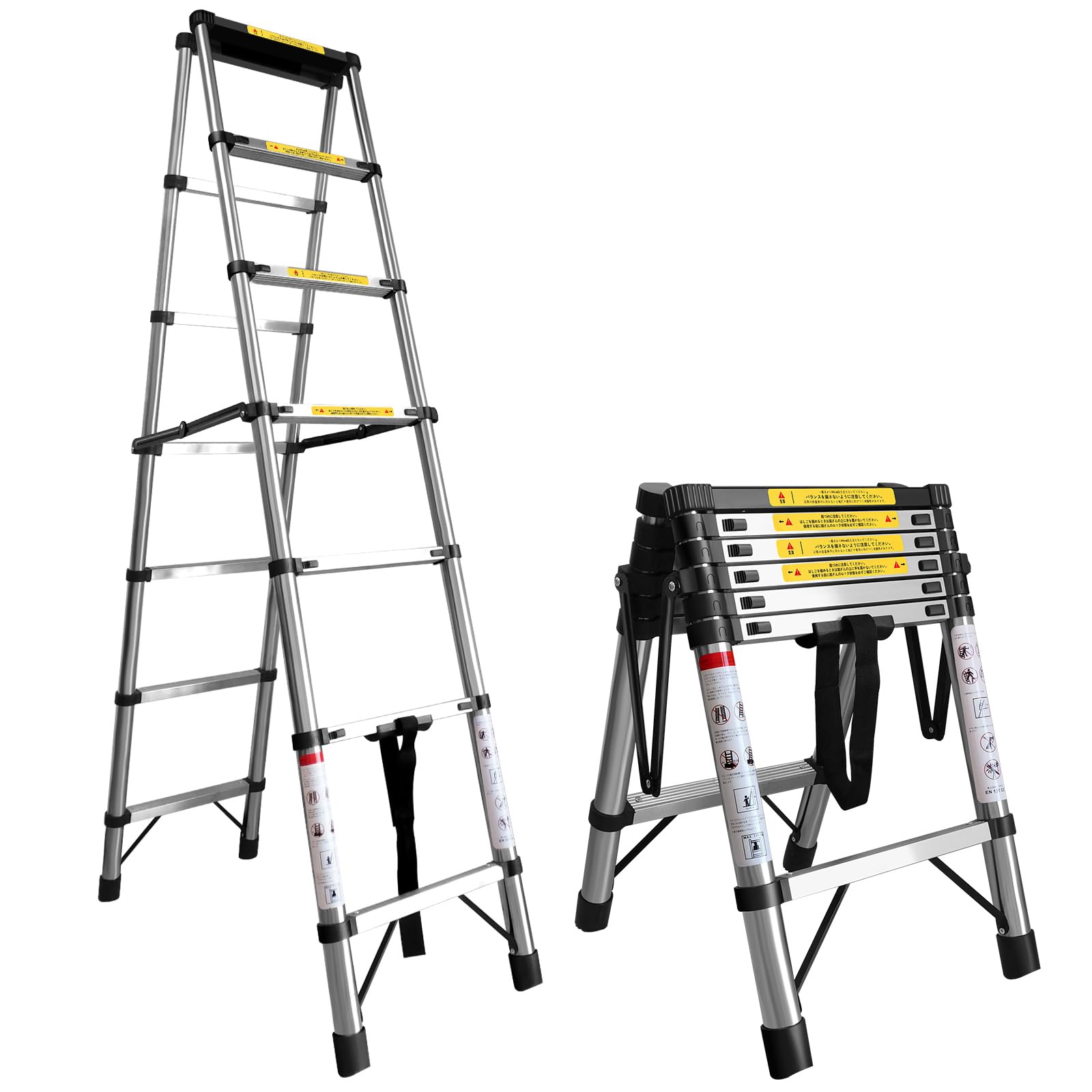 DayPlus 伸縮脚立はしご 6段+6段 兼用脚立 最長2m +2M 折り畳み 伸縮アルミはしご ・・・