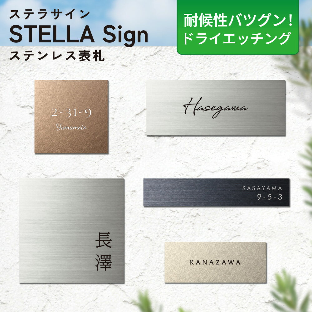 ステンレス表札 薄型 ネームプレート 戸建て用 マンション用 機能門柱用 シンプル 筆記体 ステラサ・・・