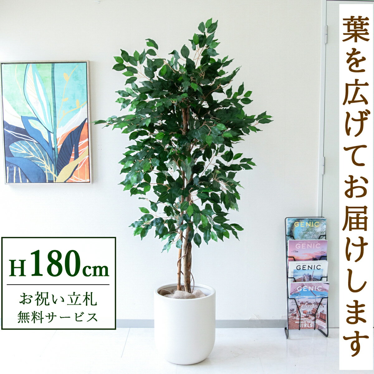 ★立札無料★【すぐ飾れる】 フェイクグリーン 人工観葉植物 フィカス ベンジャミン ツリー 180c・・・