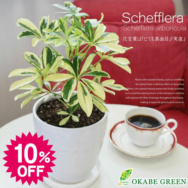 観葉植物 シェフレラ ホンコンカポック ハッピーイエロー 5号 素敵な白い薔薇陶器鉢 ラッピング無料・・・