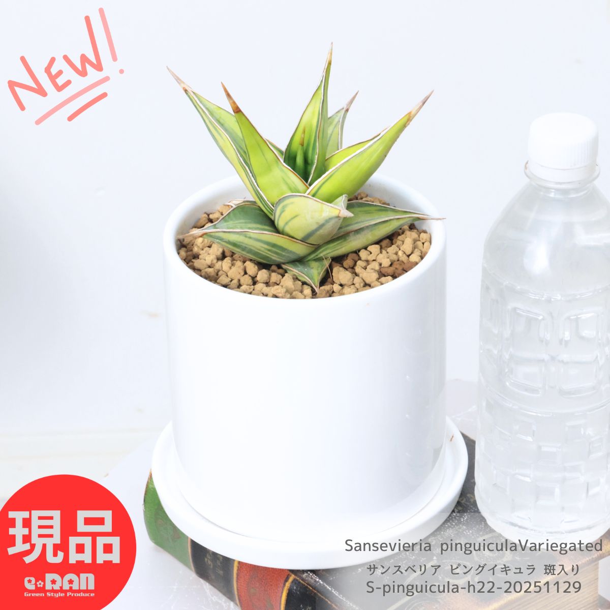 多肉植物 希少種 サンスベリア ピングイキュラ 斑入り 4号サイズ 陶器鉢 白 高さ22cm 管理説・・・