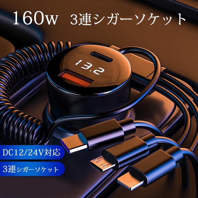 送料無料 シガーソケット 3連 usb 増設 電子タバコ 160w 急速充電 カーチャージャー iP・・・