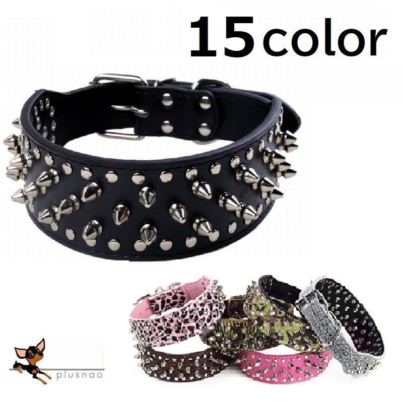 送料無料 首輪 カラー ペット用 小型犬 中型犬 大型犬 スパイク 太め お散歩 レザー調 スタッズ・・・