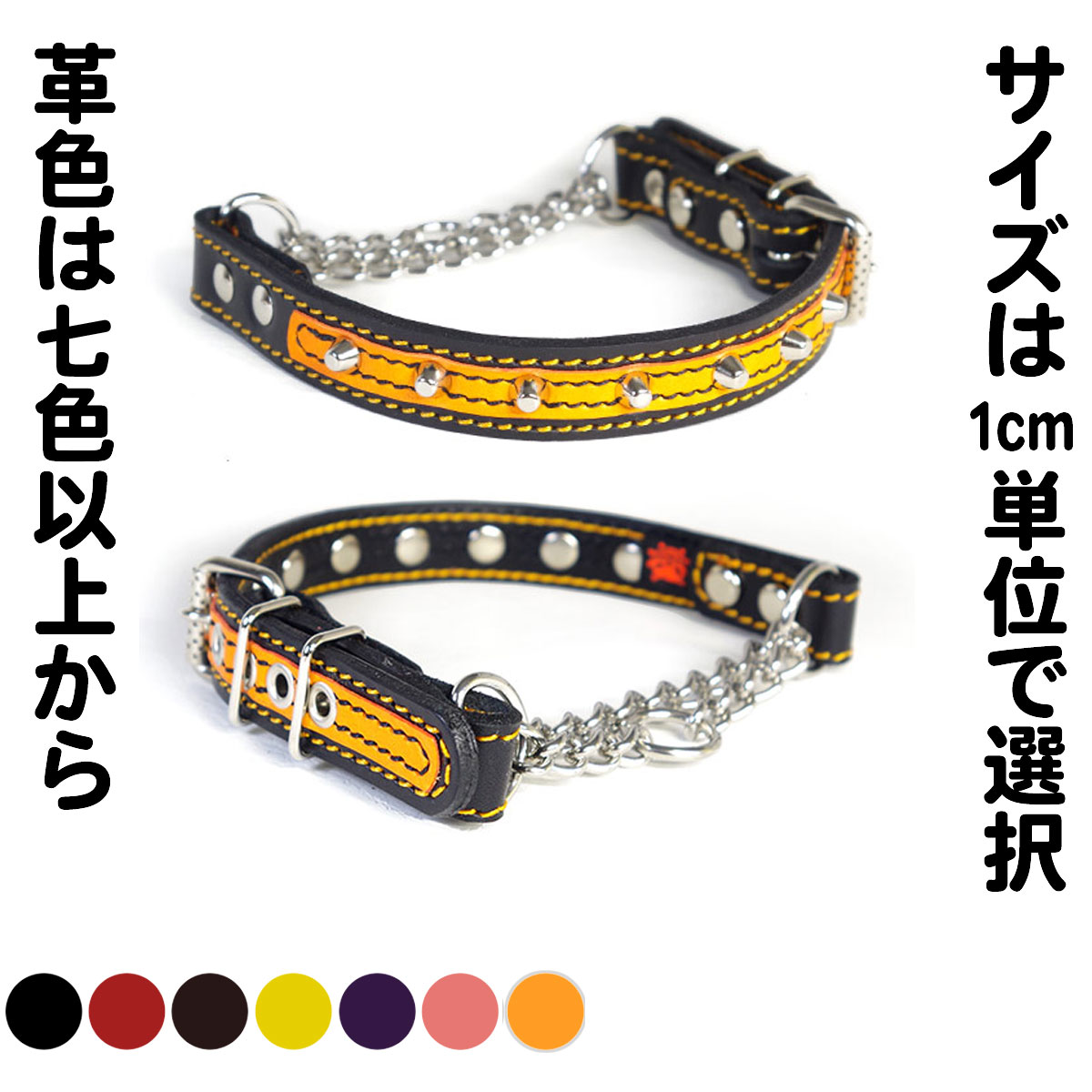 2cm幅の中型犬用スタッズハーフチョーク:2cm Type チョーカー 001 ダブルカラー(8mm・・・