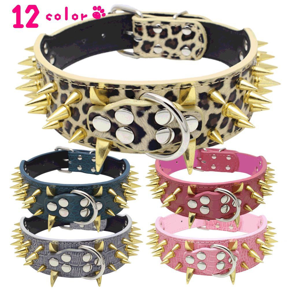 送料無料 首輪 カラー ペット用 小型犬 中型犬 大型犬 スパイク 太め お散歩 レザー調 スタッズ・・・