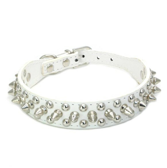 小型犬用 スタッズ 首輪 《Mサイズ ホワイト》 ペット トゲトゲ ワイルド スパイク[定形外郵便、・・・