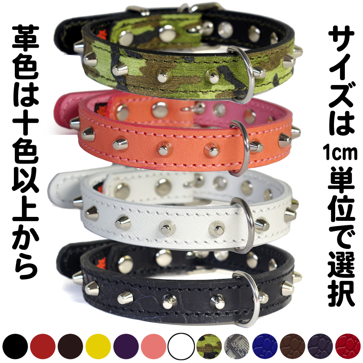 アウトレット:小型犬用1.5cm幅スタッズ革首輪(23cm)